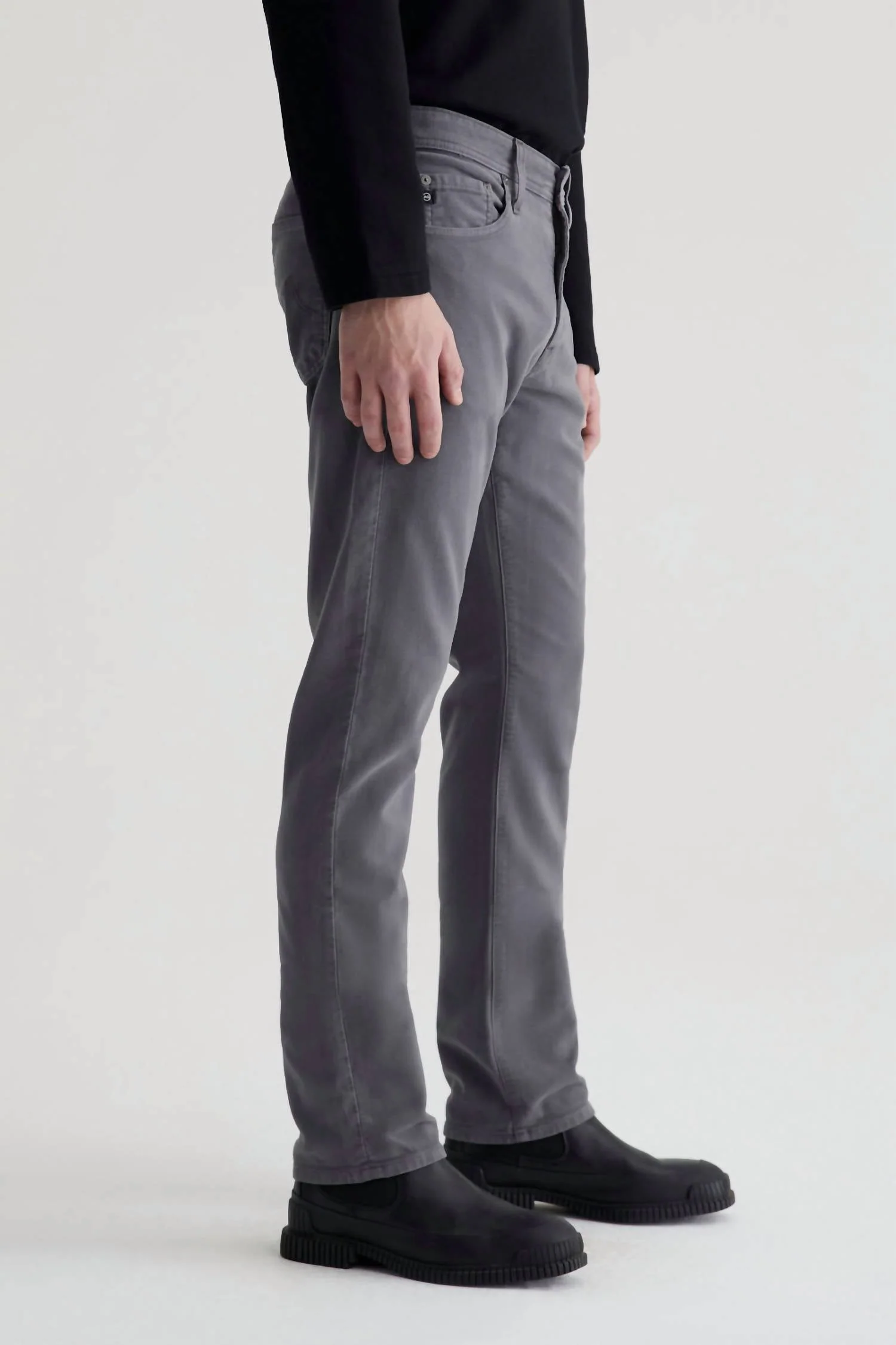 Meet the Everett Slim Straight Jean by AG Jeans in a sleek Berlin Steel shade, perfect for any stylish occasion. These jeans offer a mid-rise fit, crafted from a luxurious Japanese Brushed Stretch Moleskin with a composition of 98% cotton and 2% elastane. This piece features a zip closure and a classic five-pocket style with a comfortable stretch. Care instructions include machine wash and tumble dry. Dimensions: Front rise is 10.25", knee opening 16.5", bottom opening 15", and inseam 34".
