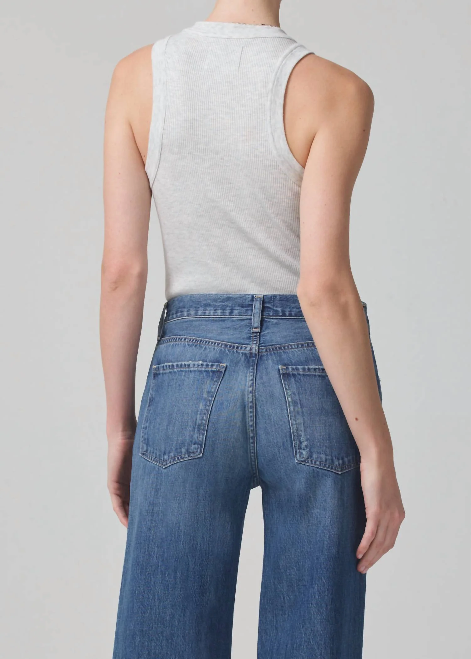 Introducing the Isabel Rib Tank Top by Citizens of Humanity, a must-have in a Pashmina shade that effortlessly complements any wardrobe. This sleeveless, form-fitting tank features a racerback design, high neckline, and cutaway armholes, perfect for solo wear or layering. Expertly crafted from 49% Tencel Lyocell, 49% Organic Cotton, and 2% Spandex, it offers breathable comfort and stretch. Closure type: Pull on.