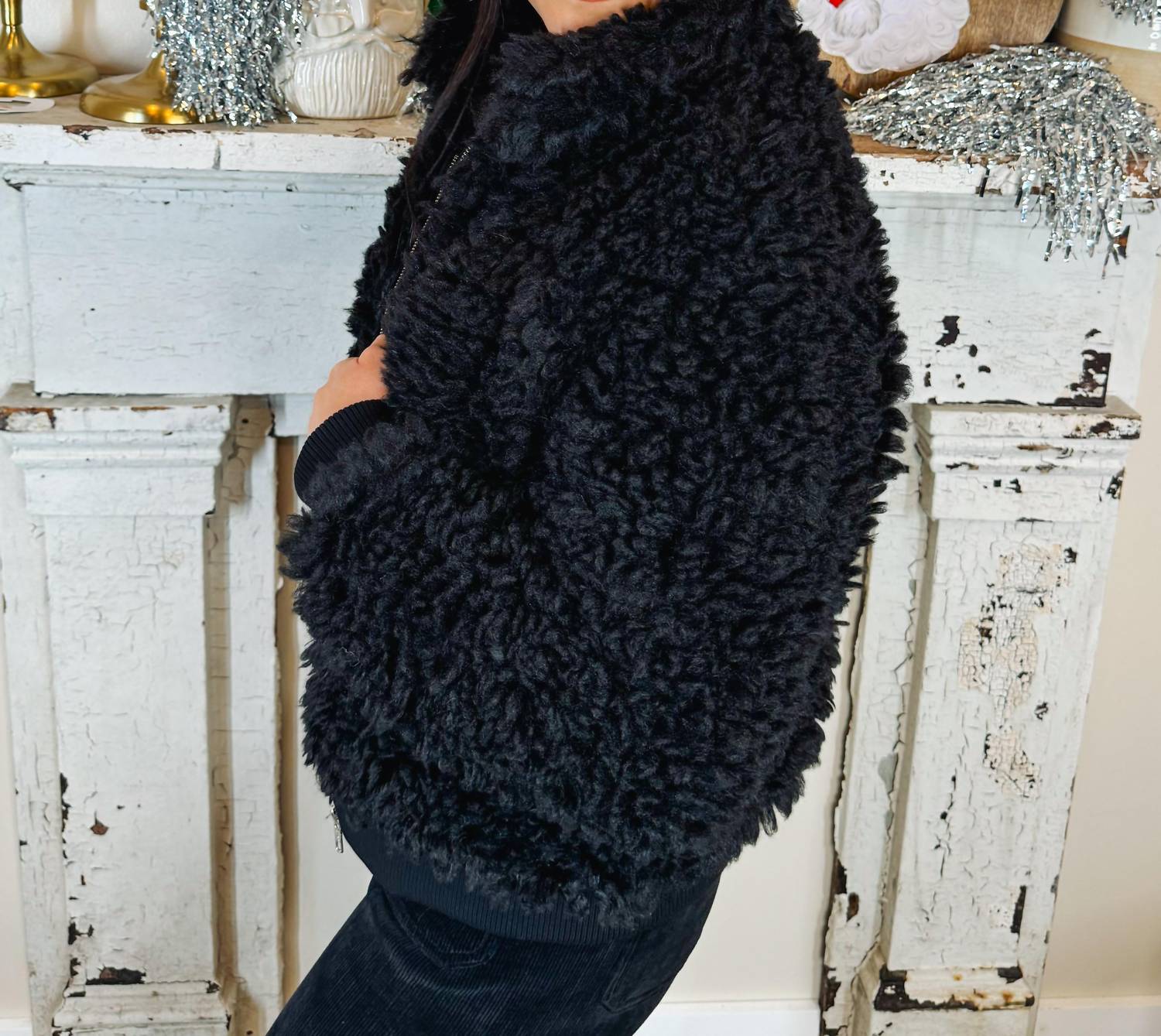 Meet the ELAN Sherpa Bomber Jacket, your new go-to for warmth and style in a sleek black finish. This women’s bomber features long sleeves and is made from soft sherpa material with a 100% polyester composition, promising cozy comfort in the colder months. It showcases a practical zip closure for easy wear. Care: Machine wash and tumble dry for effortless maintenance.