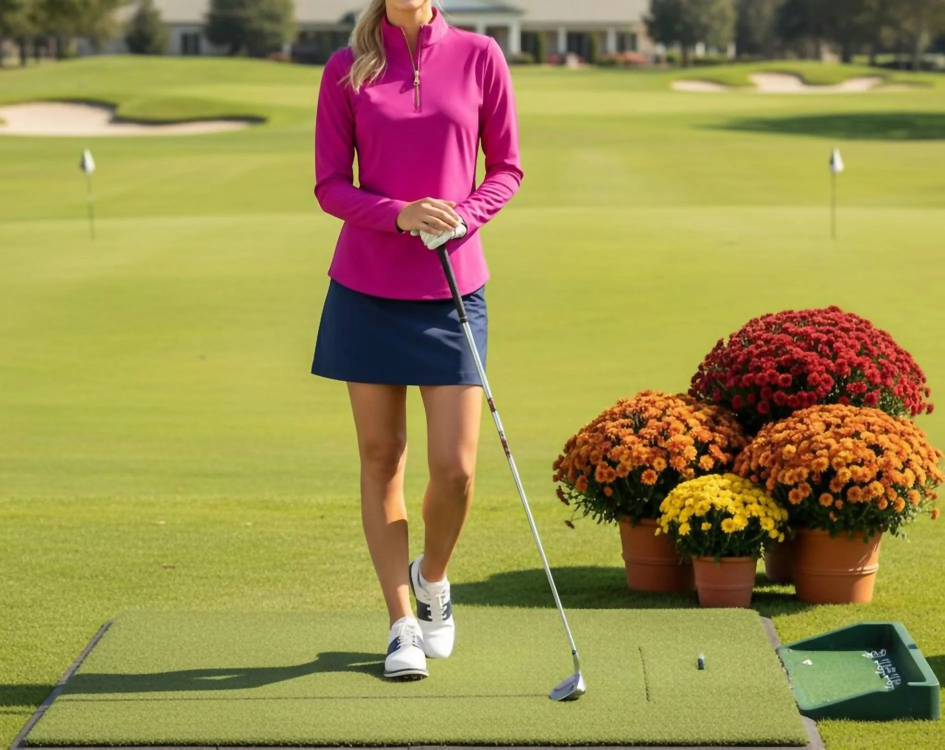 Introducing the Anna Maria Pullover Sweatshirt by Katherine Way, your ultimate athleisure companion in vibrant fuchsia. This long sleeve top boasts a mockneck with a brass zipper closure and a tailored hem for a flattering fit. Expertly crafted from 88% Nylon and 12% Spandex, it offers multi-way stretch, UPF50+ sun protection, and moisture-wicking properties to keep you cool. Made in the USA, it's machine washable and designed to never pill or fade.