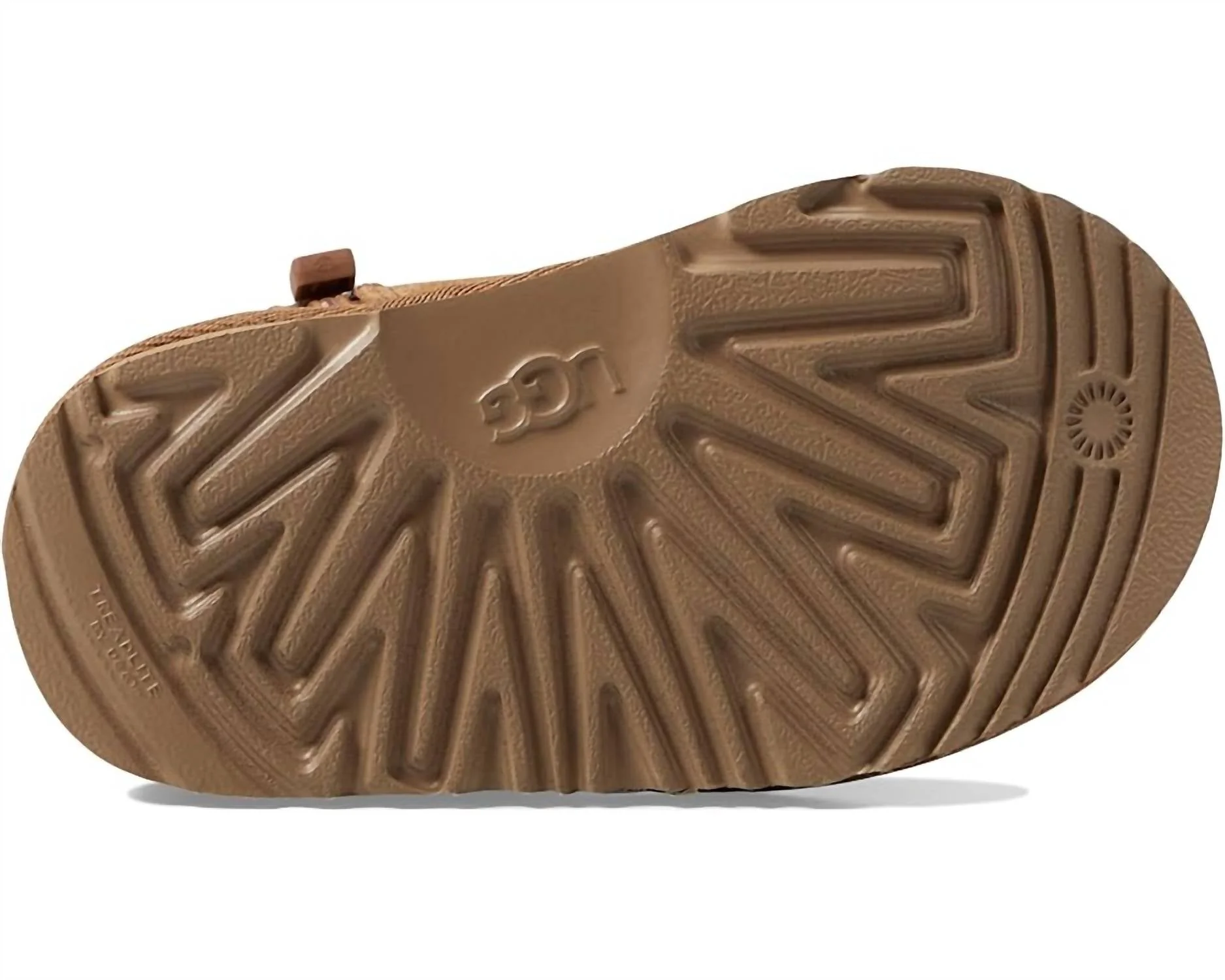 Warm and soft, the best-selling UGG® Kids Neumel II boot features ultra-soft 17 mm UGGpure™ wool lining to keep your little one cozy. This chukka is built to move the way kids do with a rocker-bottom shape for a barefoot feel and our super-lightweight outsole for traction and durability.