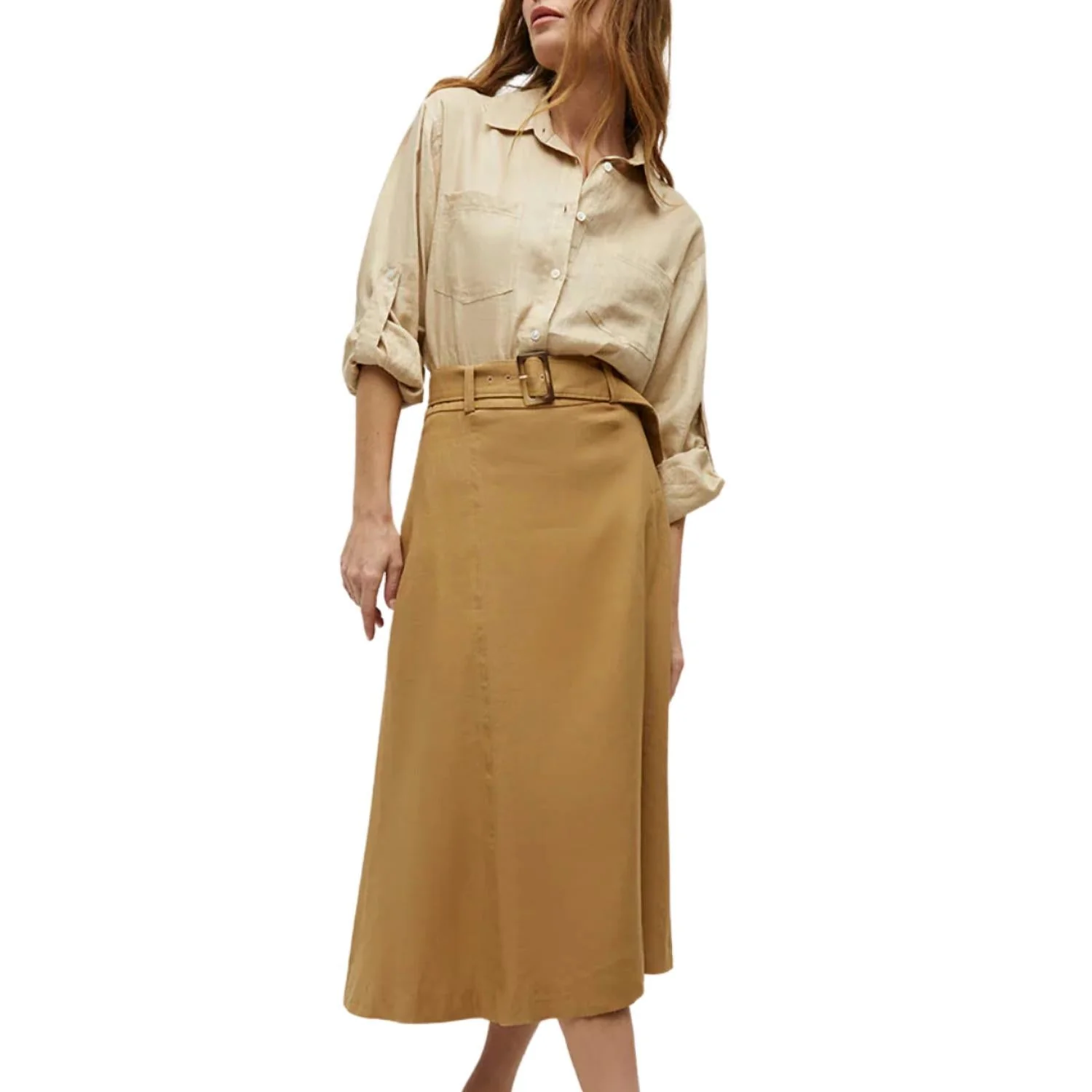 Masterfully crafted piece that embodies timeless elegance. Made from 100% luxurious cotton. Off-white midi skirt is adorned with mood-boosting floral patterns. Design is meticulously tailored to feature a matching belt that cinches at the waist. Cascading into a sleek A-line silhouette that flatters your figure. Inherent versatility. Practicality meets style with the inclusion of pockets. Convenience to this sophisticated look.