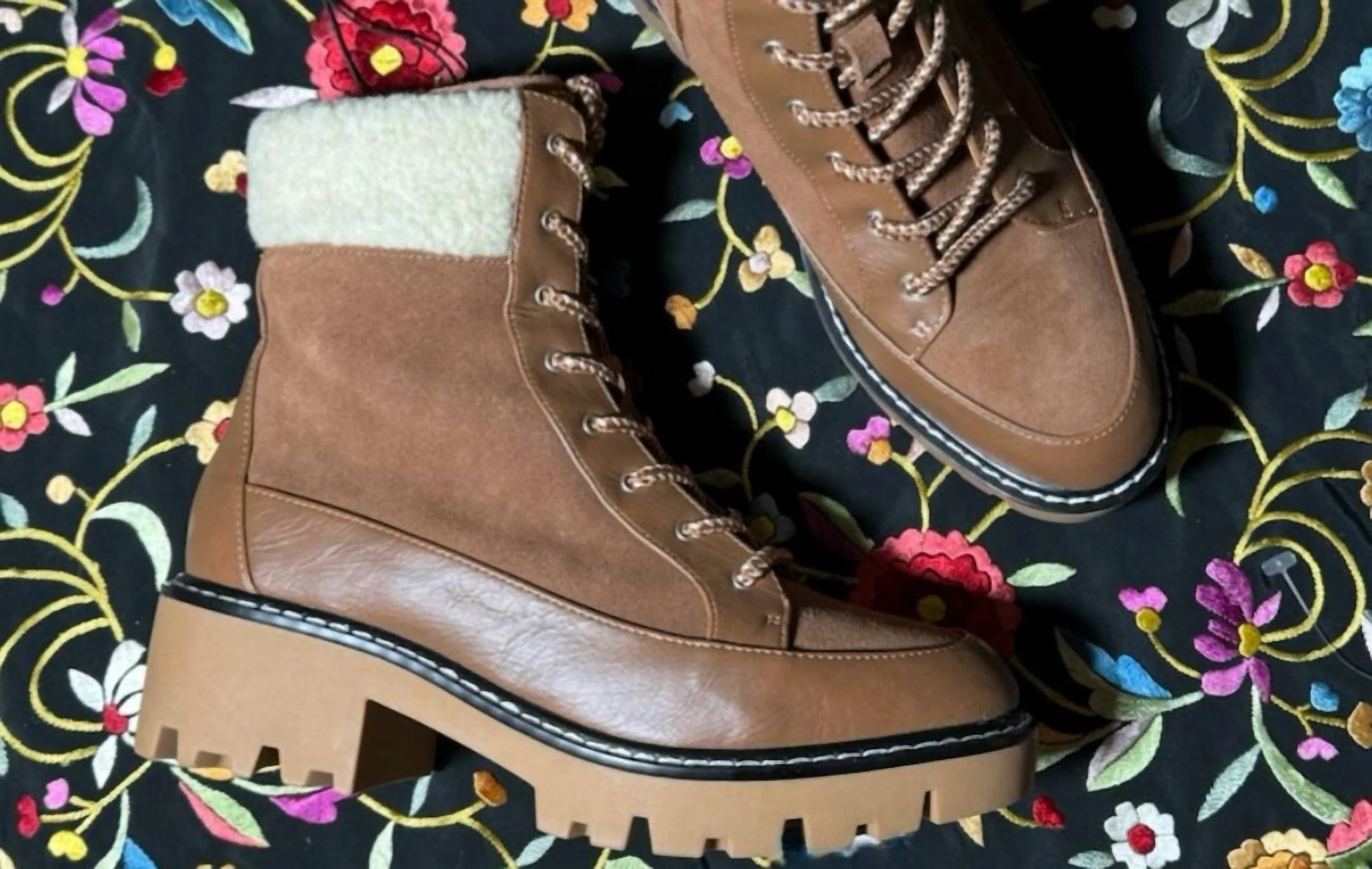 Enhance your winter collection with the Violet & Red Alexa Leather Lace Up Booties, a chic blend of style and functionality. These brown booties boast a high ankle height and round toe design with a secure lace-up closure, ideal for travel and casual outings. Crafted with a leather upper and tough rubber outsole, they feature a comfortable shearling lining and a low block heel measuring 1 1/4" to 2", ensuring durability and warmth for the winter season.